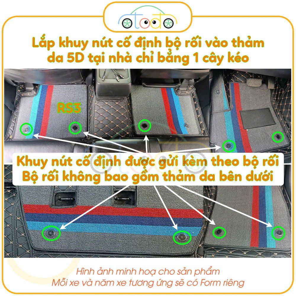 - Bộ rối dùng để lắp cho xe đã có thảm da 5D phía dưới (không phải sàn da simili). Nếu xe còn sàn nỉ zin, đặt bộ rối lên không thì sẽ không phủ hết được sàn xe.