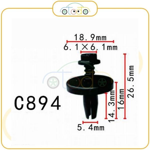 Thông số kỹ thuật Chốt nhựa dùng cho xe Ford: